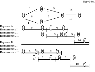 наиболее продолжительное время выполнения (LPT) – первой выполняется работа с максимальной продолжительностью;