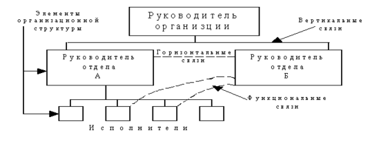Элементами структуры являются отдельные работники, службы, отделы и др. звенья, а отношения между ними поддерживаются благодаря горизонтальным и вертикальным связям.