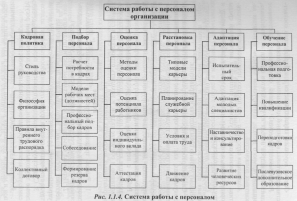 Система работы с персоналом организации состоит из шести взаимосвязанных подсистем (рис. 1.1.4):