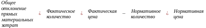 Общее отклонение прямых материальных затрат определяется как разница между фактическими и нормативными затратами прямых материалов.