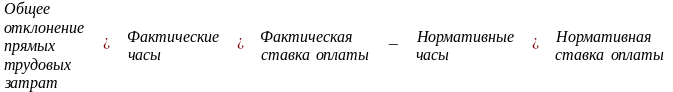 Общее отклонение прямых трудовых затрат определяется как разница между фактическими затратами труда и нормативными затратами труда на произведенные единицы продукции за исключением брака (окончательного и исправимого).