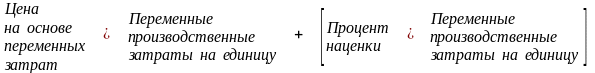 Метод ценообразования на основе переменных затрат состоит в том, что рассчитывается некоторая процентная наценка к переменным производственным затратам для каждого вида продукции.