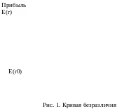 Соотношение между риском и размером дохода модно изобразить в виде кривой безразличия (рис. 1)