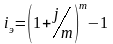 Значение ставки процентов за период начисления может задаваться непосредственно или определяться на основе заданного значения номинальной годовой ставки процентов. При этом значение эффективной годовой ставки процентов, соответствующее заданному значению номинальной годовой ставки j, по формуле (56) при n=1 и N= m будет равно: