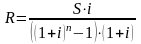 Если одинаковые суммы R будут поступать на депозитный счет в начале каждого года, то сумма всех поступлений с начисленными процентами через n лет, определяемая аналогичным образом, будет равна: