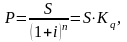 Из тех же формул можно также определить значение первоначальной суммы вклада, или, иначе говоря, осуществить дисконтирование будущей суммы вклада с процентами S по сложной ставке процентов. При использовании годовой ставки сложных процентов i и сроке хранения вклада n лет дисконтированное значение будущей суммы вклада с процентами будет равно: