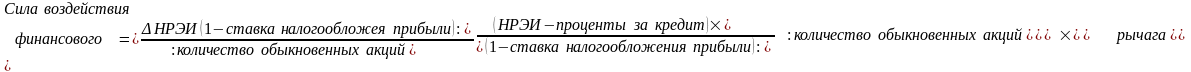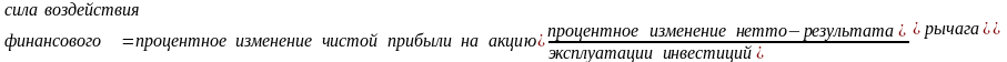 С помощью этой формулы отвечают на вопрос, на сколько процентов изменится чистая прибыль на каждую обыкновенную акцию при изменении нетто-результата эксплуатации инвестиций на один процент.