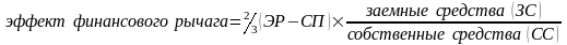 Вторая составляющая – плечо рычага – характеризует силу воздействия рычага. Это соотношение между заемными и собственными средствами. Соединим обе составляющие эффекта рычага и получим: