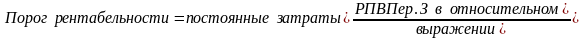 Порог рентабельности – выручка от реализации продукции (работ, услуг), которая возмещает произведенные затраты, но при этом прибыль равна нулю.
