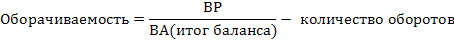 Оборачиваемость – показывает, сколько раз величина активов обеспечила возврат активов вложенных в предприятие. Величина активов берётся из формы №2, где она показывается за весь период. Итог баланса берётся по средней величине или по средней хронологической.