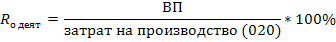 Рентабельность основной деятельности – показывает отношение валовой прибыли к величине производимых затрат на производство