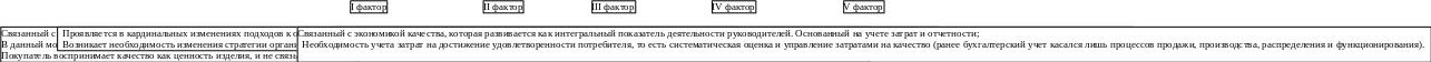 Объединение сразу и навсегда пяти факторов: постоянное увеличение удовлетворенности потребителя; эффективное управление производственными затратами; эффективное использование людских ресурсов; тесное сотрудничество с поставщиками; отвественность за охрану окружающей среды и перед обществом в целом;