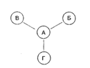 Однако для крупных управленческих структур такая коммуникационная сеть непригодна. Центральное звено А уже не в состоянии вырабатывать самостоятельно все решения и доводить их до исполнителей. У него появляется помощник (посредник) Б, конкретизирующий команды и распределяющий информацию между исполнителями В, Г, Д.