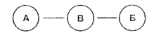 Наиболее простой вид открытой коммуникационной сети — линейная, называемая змеей (схема 6.1). Она характеризуется тем, что элементы структуры управления А и Б, которые она соединяет, находятся в тупиках, а В выполняет роль не только посредника коммуникаций, но может контролировать их. Такая сеть соединяет работников одного уровня управления, имея чаще всего неформальный характер, или является элементом более сложной сети.