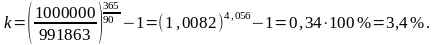 90-дневный вексель на сумму 1 млн руб. имеет доходность 3,3 %. Какова доходность векселя, выраженная годовой эффективной процентной ставкой?