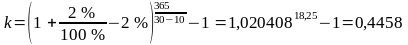 3. Рассчитывают годовую эффективную процентную ставку k по формуле