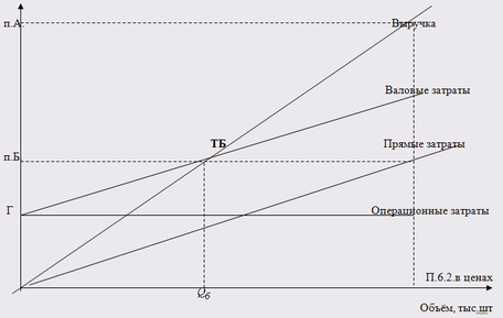Графический метод определения безубыточности для предприятий, выпускающих один вид продукции (монопродукция)
