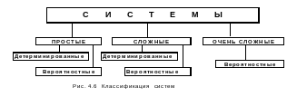 В результате при двух классификационных признаках все системы можно разделить на пять категорий: простые и сложные детерминированные; простые, сложные и очень сложные вероятностные (см. рис. 4.6).