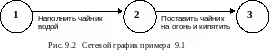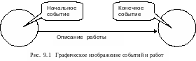 Рассмотренные выше примеры сетевых графиков демонстрируют то, что не всегда удобно на дугах (стрелках) графика прописывать содержание (название) работ, так как стрелки иногда удобнее делать ломанными, изогнутыми и т.д. Поэтому в целях более компактного представления расписаний (график плюс текст) используют представления графика, где узлами являются описания работ с указанием длительности, а стрелки указывают только последовательность работ. В таких представлениях изображение промежуточных событий, как таковых отсутствует.