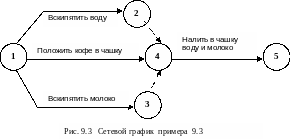 На рисунке 9.12 приведена диаграмма Ганта для рассмотренного выше примера по организации научного семинара. Следует отметить, что в представленном на рисунке виде диаграмма не совсем удобна для анализа суммарных длительностей работ, принадлежащих разным цепочкам (путям), и выявления критического пути. Для обеспечения этих возможностей на диаграмме можно изобразить связи в виде линий между последовательными работами.
