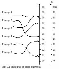 Однако даже при реализации системного принципа структуризации может существовать частичная взаимозаменяемость элементов с точки зрения достижения целей вышестоящего уровня, поэтому не всем мероприятиям уделяется одинаковое внимание. Все зависит от выбранной системы критериев и типа задач, для решения которых используется дерево мероприятий. Например, автомобиль состоит из кузова, двигателя, колес и других элементов. Отсутствие хотя бы одного из них в дереве мероприятий по созданию автомобиля недопустимо, т.е. здесь при использовании принципа структуризации применяется логика “И” и отсутствует какая-либо взаимозаменяемость элементов системы с точки зрения выполняемых ими функций. Поэтому целевая значимость таких мероприятий одинакова и равна целевой значимости создания автомобиля в целом. Однако, если комплекс разрабатываемых мероприятий направлен на улучшении конструкции автомобиля или разработку автомобиля, ряд узлов которого уже создан, то исходя из критерия, характеризующего существующий уровень проработанности конструкции, разным элементам системы могут быть даны различные оценки, включая нулевые. Иными словами, существует частичная взаимозаменяемость и используется логика “И”/“ИЛИ”.