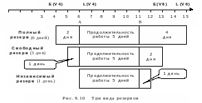 График на временной оси трех видов резервов. На примере работы a46 покажем, как все три вида резервов можно изобразить на графике с временной осью (рис. 9.10).
