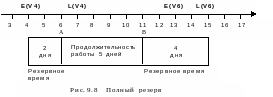 | - ранний срок свершения события V6 - ранний срок свершения события V4 - разность - продолжительность работы - свободный резерв | = 13-й день = 4-й день = 9 дней = 5 дней = 4 дня |