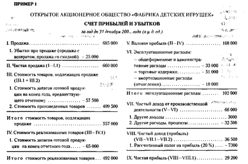 В счете прибылей и убытков устанавливается соответствие доходов (в первую очередь от реализации продукции) и понесенных при этом расходов за отчетный период. Их разность и есть чистая прибыль предприятия за это время.