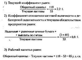 2. Коэффициент отношения кассовой наличности и дебиторской задолженности к текущим обязательствам предприятия показывает возможность выплаты краткосрочных долгов за счет той части оборотного капитала, которая всегда под рукой: оборотные средства минус запасы (запасы требуют времени для их реализации). Иногда запасы не реализуемы, так как их изготовление требует дополнительного времени (например, выдержка вина).