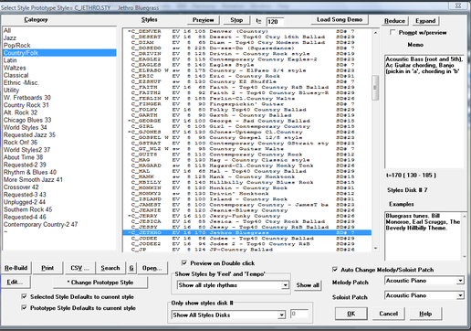 Хочется отметить, что в отличии от функции автоаккомпанемента синтезатора, программа дает возможность выбора из гораздо большего числа наборов стилей (к примеру самая полная версия MegaPack, включает 60 наборов стилей).