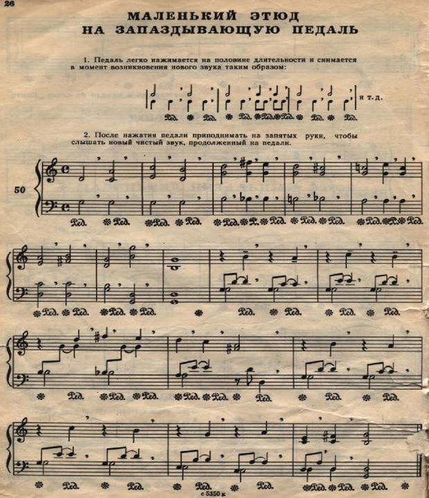 Если кому-то трудно или непонятно, как пользоваться педалью, у Е. Гнесиной в сборнике «Подготовительные упражнения к различным видам фортепианной техники» есть лёгкий и понятный «Маленький педальный этюд» на прямую педаль (см. приложение стр. 9).