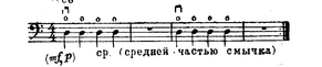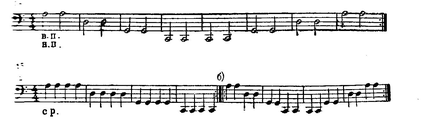 В этом случае ученик должен с особым вниманием следить за сохранением правильной постановки и свободного состояния руки, а также наблюдать за тем, чтобы смычок постоянно двигался под прямым углом к струне, и добиваться мягкого, чистого звука.