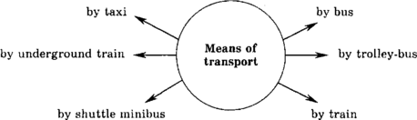 2) A biggie way to get to different places in the city is to use an Underground train. Students should guess from the context what "biggie" means in each case (bus, quick). Then ask students to work in pairs, and to make up two of their own "biggies!" Point out that "biggie" can be a noun, verb, adjective, etc., and explain that it must be possible to guess the meaning. They have to make "biggie", using the topic "City transport".