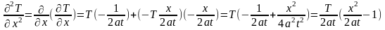 Вторую производную температуры по оси ОХ найдем по правилу дифференцирования произведения двух функций