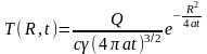 здесь R2 = х2+ y2+ z2 - квадрат расстояния от источника тепла О до точки тела А с координатами х, у, z. Это уравнение процесса является особым решением дифференциального уравнения теплопроводности. Очевидно, что процесс (4.1) симметричен относительно точки О, т.е. температура любой точки тела определяется только ее сферическим радиусом-вектором R. Изотермическими поверхностями являются сферы R = const с центром в точечном источнике О.