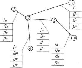 Рис.7.1. Расчетная схема тупиковых газопроводов низкого давления