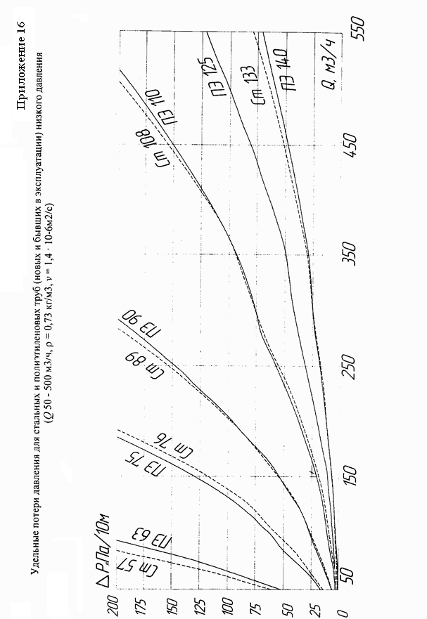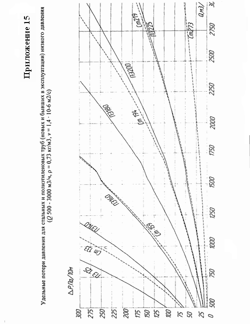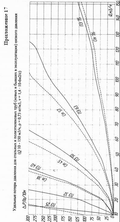 Приложение 18. Для расчета газопроводов низкого давления (трубы стальные водогазопроводные ГОСТ 1050-88)