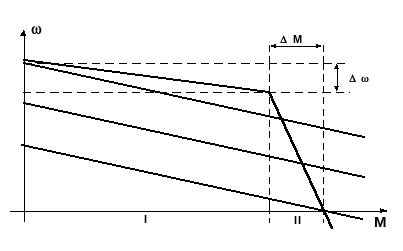 Данная статическая характеристика имеет два участка I и II, каждому из которых соответствует определенная структура СУЭП.