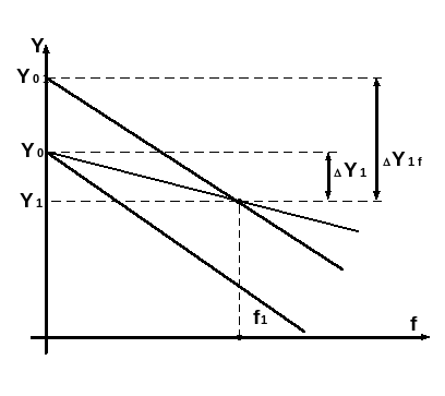 Y01- значение регулируемой переменной при f1=0 по характеристике разомкнутой системы, проходящей через точку (Y1;f1) характеристики.