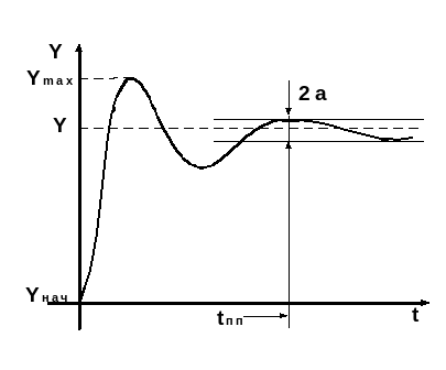 Быстродействие- продолжительность п/п, т.е. длительность tп/п до условно установившегося значения регулируемой переменной, когда ее отклонение не превышает a (3 5% от установившегося значения) т.е.