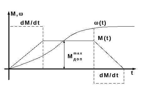 Мmaxдоп и доп (допустимое ускорение) определяются перегрузочной способностью двигателя, механизма передачи, технологическими характеристиками.