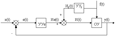 Управление U(t) формируется в зависимости как от отклонения (t), так и от внешних воздействий x(t), f(t).