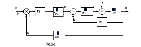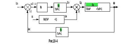 Структурная схема системы регулирования скорости с обратной связью по скорости представлена на рис.10-3