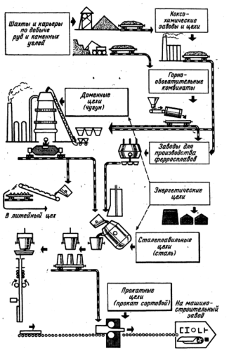 Современное металлургическое производство чугуна и стали состоит из сложного комплекса различных производств (рис. ):