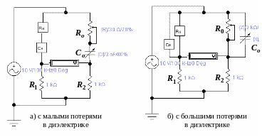 Тангенсом угла потерь конденсатора называется отношение активного сопротивления к реактивному для последовательной схемы замещения конденсатора и отношение активной проводимости к реактивной в случае параллельной схемы замещения. Тогда для моста на рис. 2а , а для моста на рис. 2б .