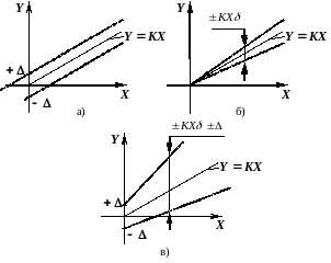 Рис. 2. Виды погрешностей по характеру изменения в диапазоне измерений: