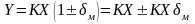 Если положение границ полосы погрешностей имеет вид, показанный на рис. 2б, т.е. ширина полосы возрастает пропорционально входной величине , а при также равна нулю, такая погрешность называется мультипликативной т.е. получаемой путём умножения («погрешность чувствительности»). Уравнение функции преобразования прибора для этого случая имеет следующий вид: