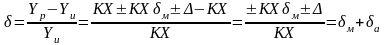 Чаще всего возможен третий случай, когда при погрешность не равна нулю и прибор имеет зависимость погрешности от входной величины, как показано на рис. 2в. В этом случае говорят о совокупности аддитивной и мультипликативной погрешностей, а функциональная зависимость выходной величины от входной имеет следующий вид: