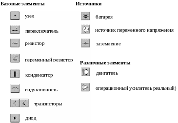 Рис. 8. Пиктограммы наиболее часто используемых элементов