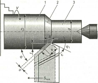 Оброблювана поверхня (рис. 1.1) – це поверхня заготовки, з якої знімають стружку (1); оброблена поверхня (3) — це та, з якої знято стружку; поверхня різання (2) утворюється головним різальним лезом різця.